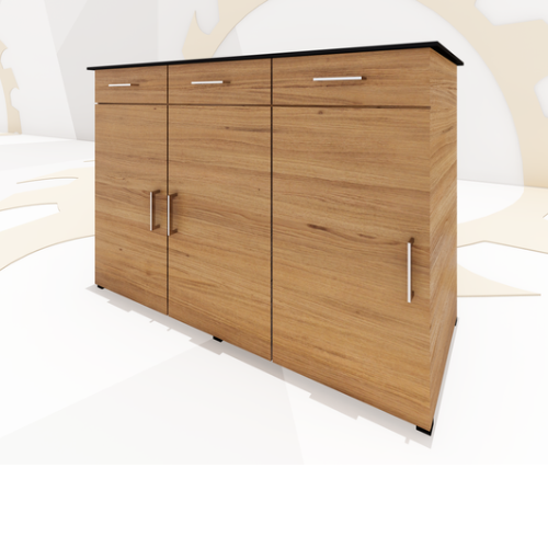 Balcão de fiscal de caixa situado ao lado dos caixas na entrada da loja, destinado a auxiliar ao funcionário a organização e monitoramento dos mesmos conforme o dia, disposto de gaveta e portas com fechaduras. O comprimento é estabelecido conforme o espaço disponível no local.